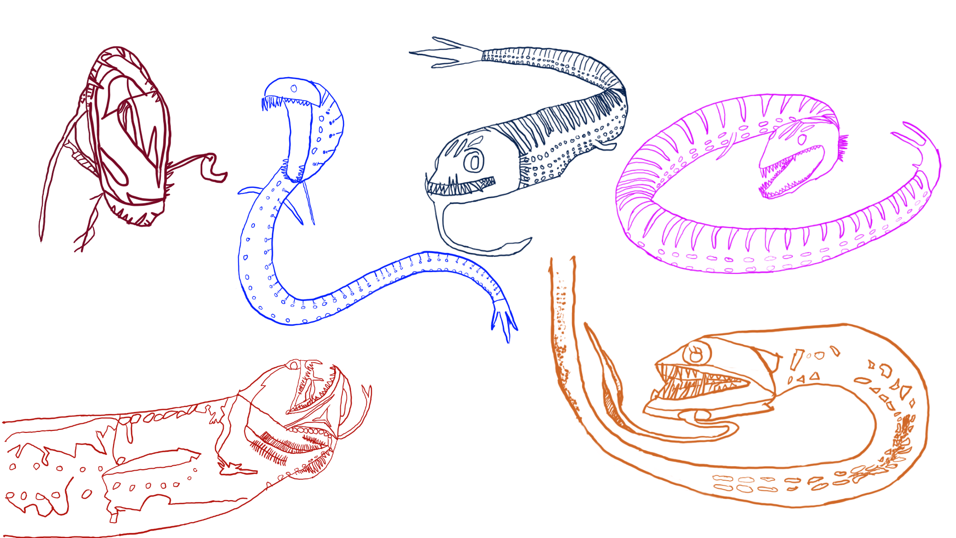 This is my attempt at drawing a unique looking fish called the dragonfish. It is a practice sketch of me trying to draw different perspectives of how the dragonfish can be drawn.