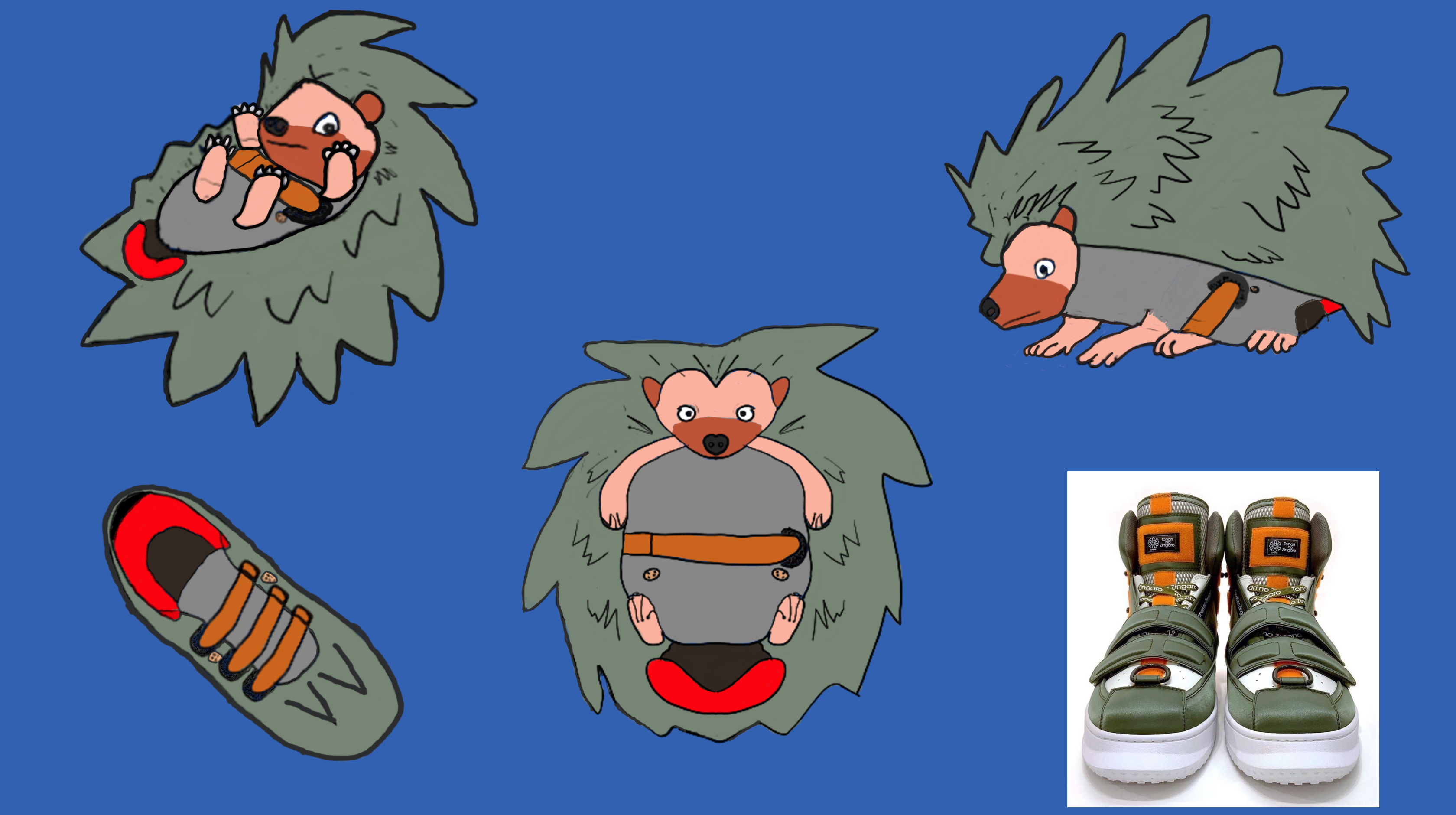 This is my first attempt of creating my own persona/avatar. It's meant to portray a running shoe that can transform into a hedgehog, which was inspired by objects from the One Piece anime being able to turn into animals after "eating" a Zoan Devil Fruit.