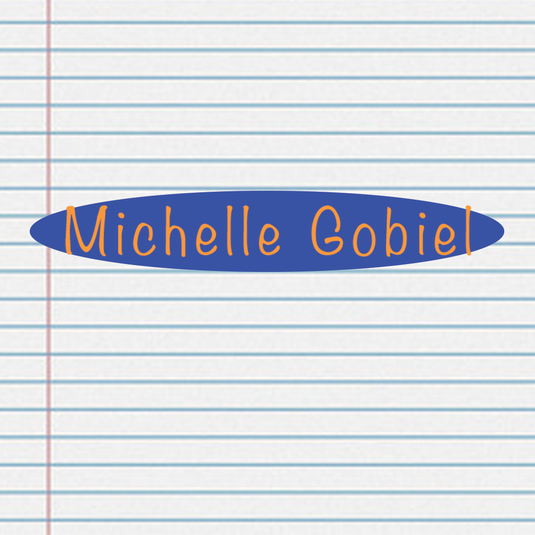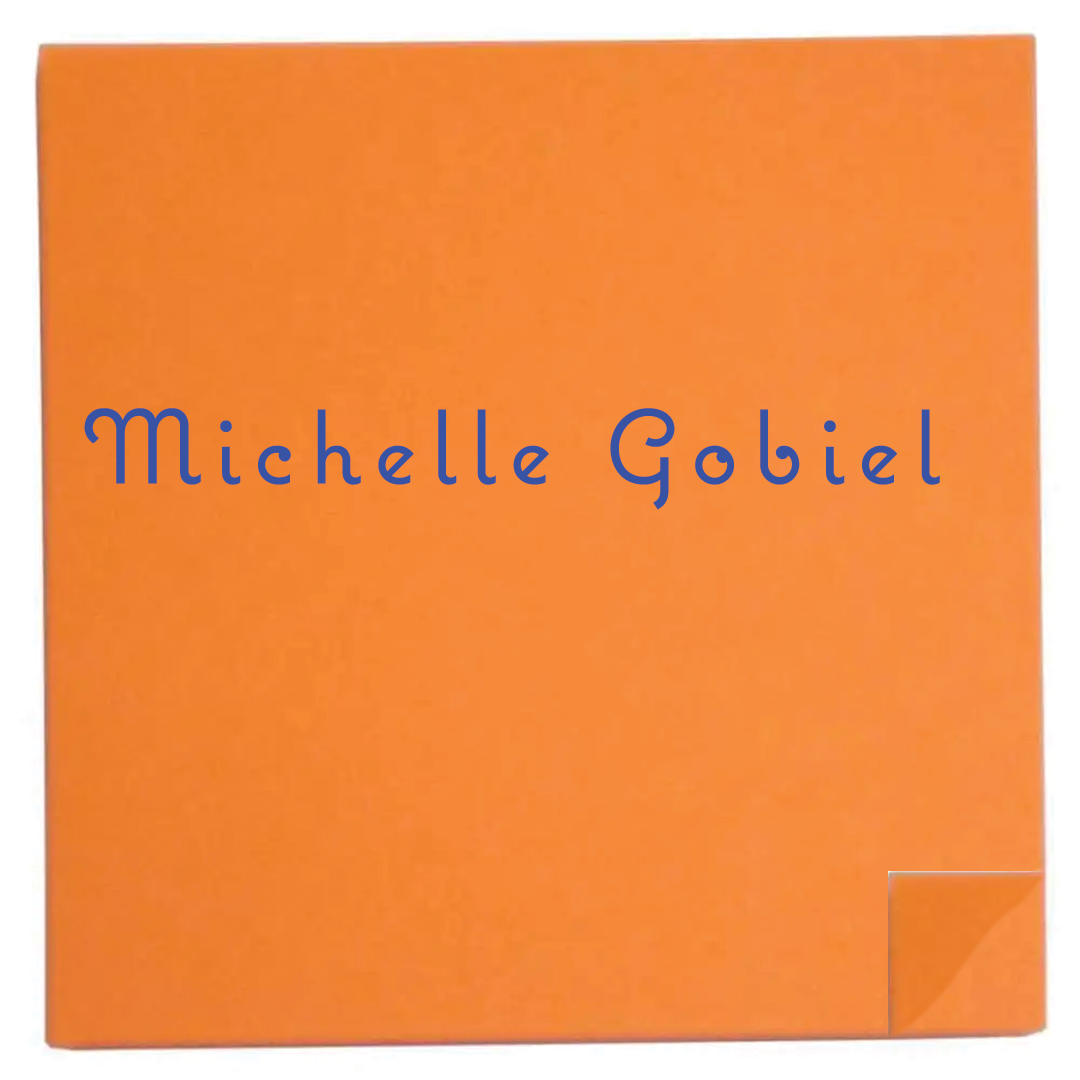 I made three logo options for a fictional illustrator named "Michelle Gobiel." To format her profession as an illustator, I made the background choices be either be lined paper, a notepad, or a sticky note.